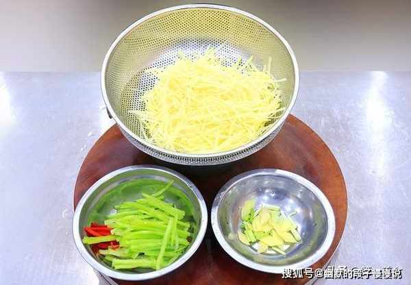 2.把土豆丝焯一下水:
