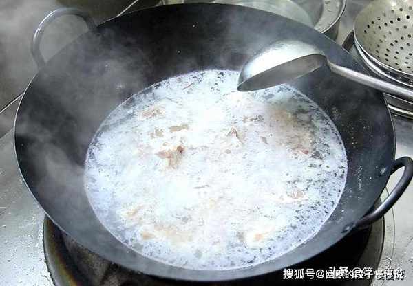 锅内烧油,油烧热以后把葱、姜放入锅中,开小火爆出香味,把排骨放入锅中,转中火煸炒2分钟,炒出排骨中的水分,排骨炒香以后,从锅边淋入适量的清水没过排骨,加入少许料酒,大火把水烧开,再次打去锅中的浮沫,煮出来的汤更加清爽,不会油腻。