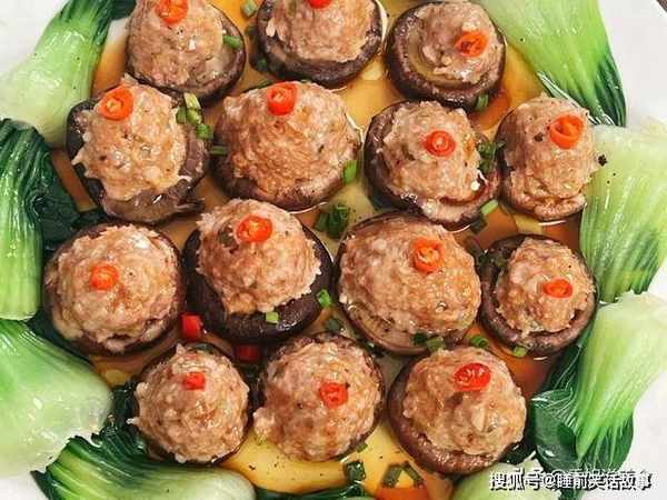 鲜香菇,肉末,葱花,姜末,油菜,小米辣。