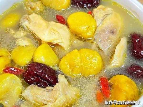 板栗仁,鸡肉,红枣,枸杞,姜片,葱段。