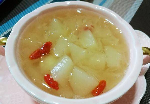 这道汤就是雪梨银耳汤,简单的一种甜汤,好喝美味,营养也高,不仅可以渗湿健脾、祛除身体寒气,预防秋燥,还可以补营养、强身健体