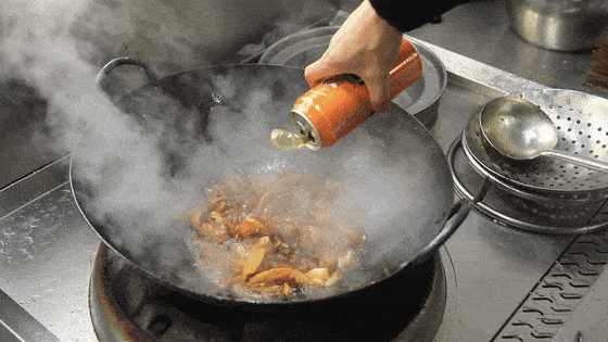 加入事先准备好的小料,开小火炒出香辣味。加入老抽2克提色,料酒5克去腥,等色泽炒均匀之后,倒入一罐啤酒去腥增鲜,让鸭肉的香味更加醇厚。如果汤汁不够多的话,还可以再加一些开水。
