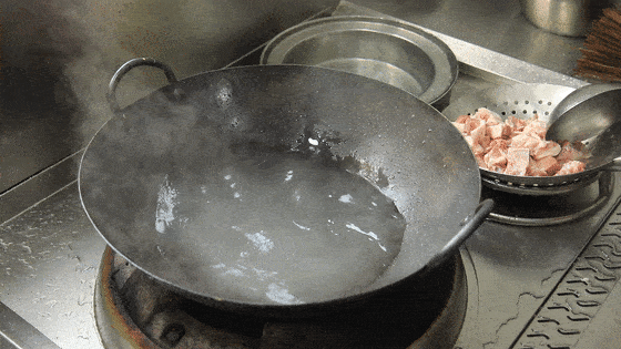 锅内烧油,放入一小把冰糖不停的搅拌,让冰糖在快速融化的同时不至于糊锅。你会发现在,冰糖在加热融化过程中,糖汁的颜色会逐渐加深。等到糖汁变成红棕色,把鸭块倒入煸炒2分钟左右。快速的翻炒一下,让鸭块均匀的裹满糖色的同时,还能炒出鸭块中的肥油,把鸭肉炒香。