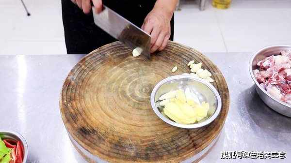 准备一只宰杀干净的肥鹅,剪掉脚趾后把鹅肉剁成均匀小块。青红椒各一个,去蒂后切成菱形块,为菜品增色。