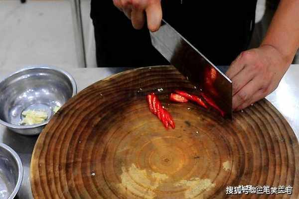 首先,我们准备几粒大蒜、拍扁,小米椒斜刀切成片。