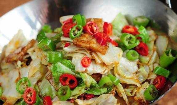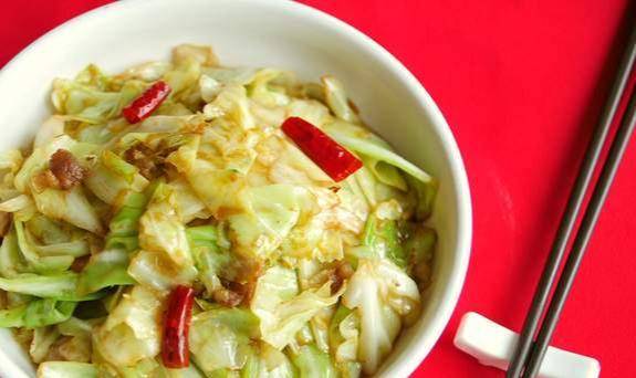 把这些香料炒香,然后倒入滤过的卷心菜。别忘了用大火快速翻炒,直到白菜碎裂变香。