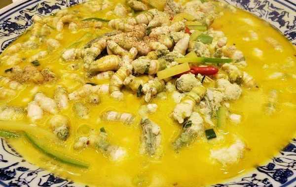 原来“豆丹”并不是一般的菜,而是用虫子制作成的,是用豆天蛾的幼虫制作成这道菜。外地人一听到这里就表示不能理解,吃虫子可真重口味,而且还是很小的幼虫。这种幼虫的外观与蚕宝宝非常类似,呈现出圆筒的形状,是绿色的。