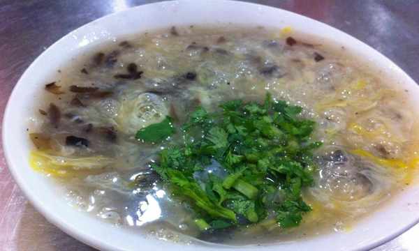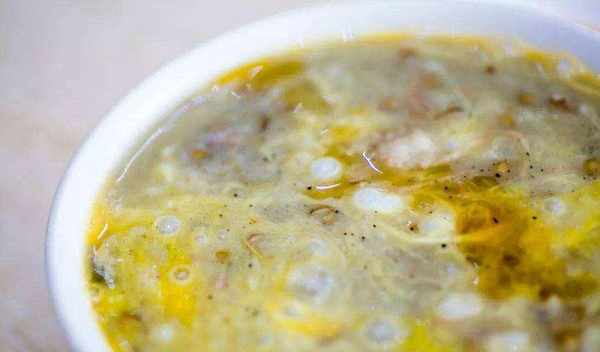所以就去查了资料,查完才知道读“Sha汤”。(饣它)汤以鸡汤作为汤底,加入燕麦片、绿豆等各种各样的食材,食材多到什么程度呢?达到了难以数清楚的程度。