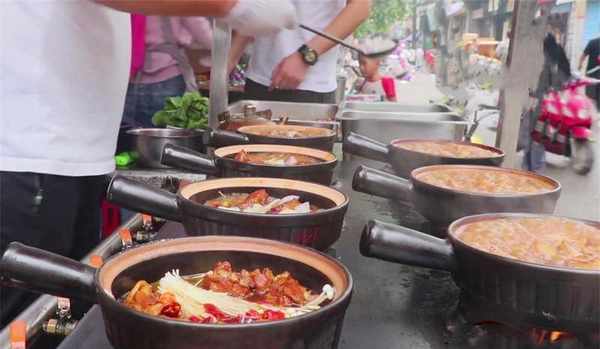 小伙子店里只卖一个单品,就砂锅鸡,只是搭配不同的配菜和调味,制作出不同口感的砂锅鸡,店里5-6个人一直忙过不停,经过几年的努力,还在西安不同的地段开了好几家分店,让更多的食客吃上自个觉得美味的美食。