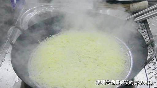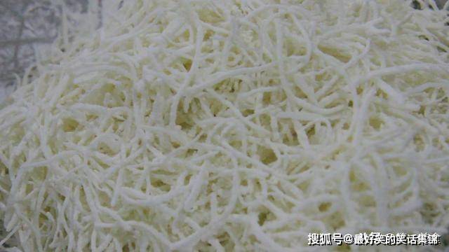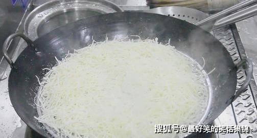倒出土豆丝,趁热用筷子抄散土豆丝。在抄散的过程中,土豆丝变凉,会变的更有韧性。
