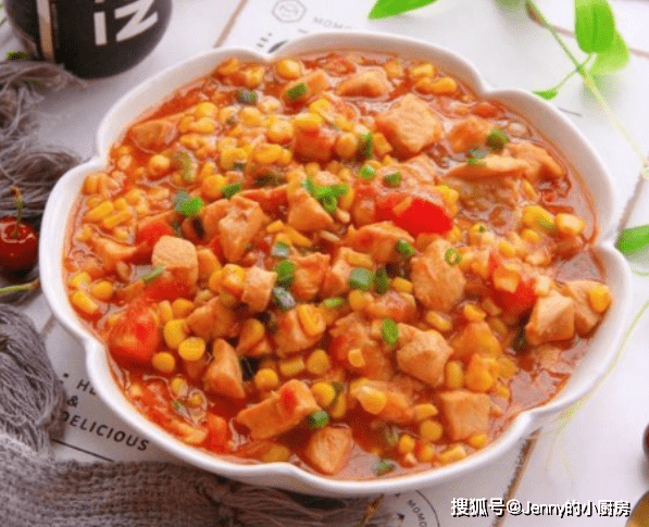 接着放入玉米粒、鸡胸肉,继续大火煮两三分钟。