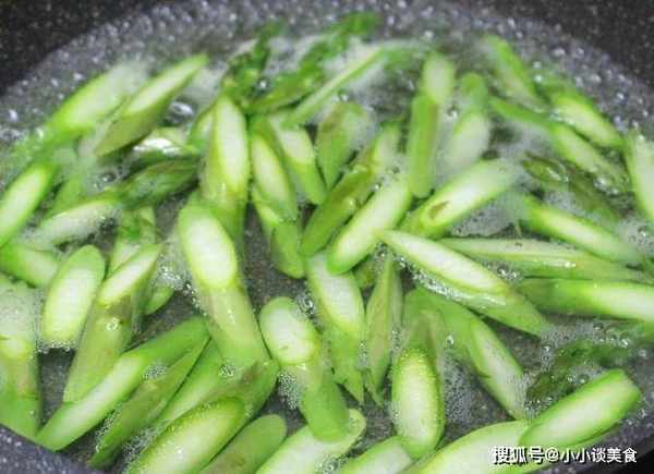 1.待芦笋变色后,加入几滴食用油,以保持芦笋的绿色。