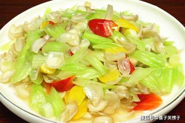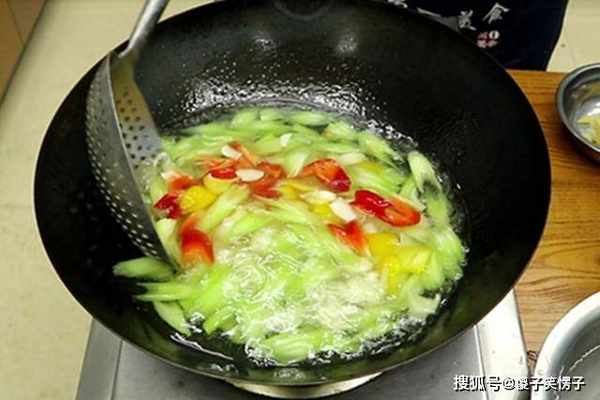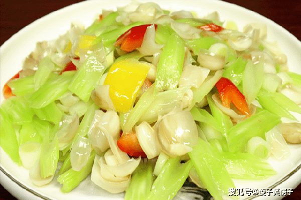 2.锅内烧水,加入食盐和植物油,放入西芹焯水10秒钟,再放百合和彩椒继续汆煮10秒钟捞出,用清水冲洗过凉,控水备用。