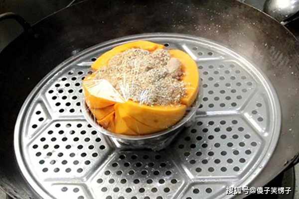 蒸锅中水烧开以后把南瓜五花肉放进去,中火蒸40分钟就可以了。