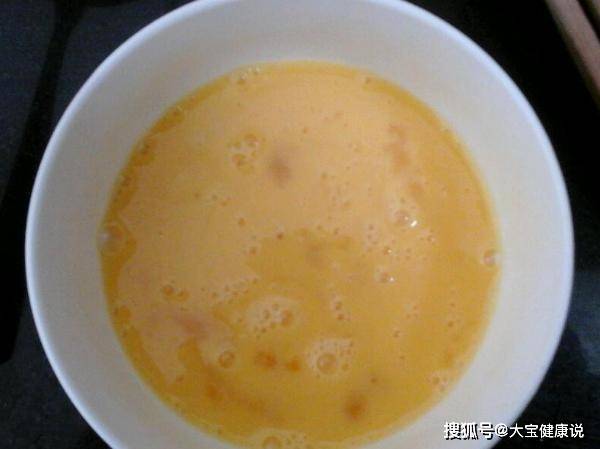 第三步:将鸡蛋打入碗中,打至蛋液状,再倒入适量的水,搅拌均匀。