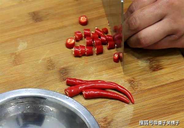 准备小米椒几个,切成辣椒圈。大蒜几粒,拍扁剁成碎末。