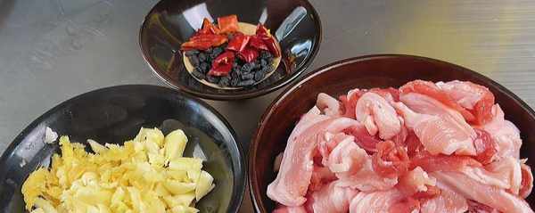 大蒜去皮拍成蒜末,生姜切生姜片,或者你拍一下也可以,同时准备少量的豆豉及干辣椒段。