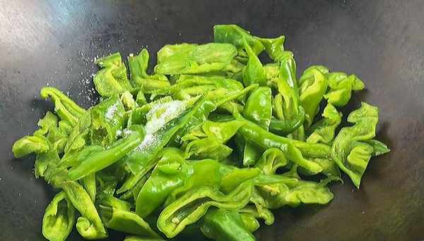 锅热后直接倒入辣椒进行煸炒,在煸炒的过程中不需要放油,炒至辣椒断生的时候再放入少许盐,让辣椒更加入味,这样炒出来的辣椒味道会更香,将辣椒变软之后盛出。