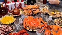 除此之外,还有几瓶茅台和一瓶“国康1935”。完事后,大家聊了还不到一根烟的功夫,几位服务员已经端着美食美酒前来,并整齐地摆放在餐桌上。几分钟后再看,鲍鱼龙虾茅台也不少,并挤满餐桌。