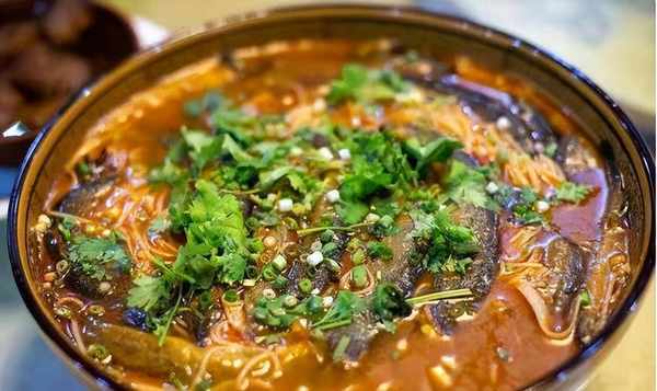泥鳅挂面是安徽合肥肥东县的一道特色小吃,刚刚做出来的泥鳅挂面,色泽鲜艳,泥鳅肥美鲜嫩,轻轻一吸就能脱骨,肉质非常细腻,软弹的挂面吸收了泥鳅的鲜味,滑嫩可口,汤汁浓郁鲜香微咸,吃上一碗既解馋又爽口。