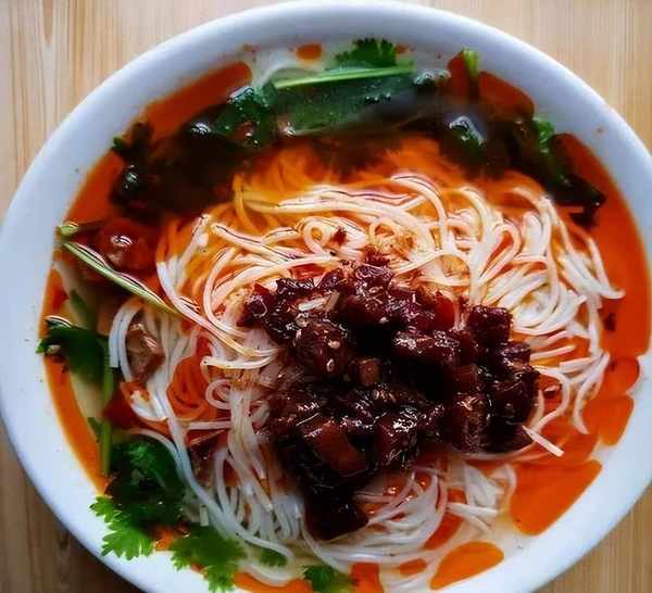安庆牛肉面是安徽安庆非常受欢迎的一道面食,这碗牛肉面不像兰州拉面那样清淡,它的汤底是用纯牛骨汤熬制的,搭配上特制的辣椒牛肉,汤汁香辣浓厚,厚重咸鲜,面条吃着劲道柔韧,非常过瘾。