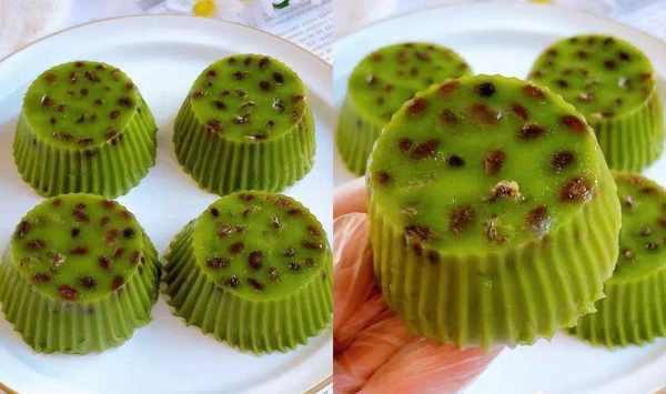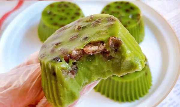 5、这种红豆抹茶糕,吃起来有点Q弹,很像马蹄糕,用来当早餐,用零食吃,都美味解馋。