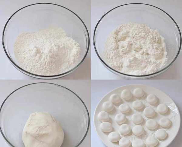 1、准备好糯米粉,加入适量清水和面,然后将面团分成小份,搓成小圆饼造型。