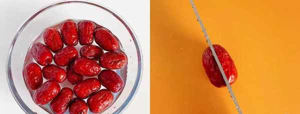 1、准备一碗红枣,清洗干净,可以提前泡软半小时。然后将红枣切开,去掉中间的果核。