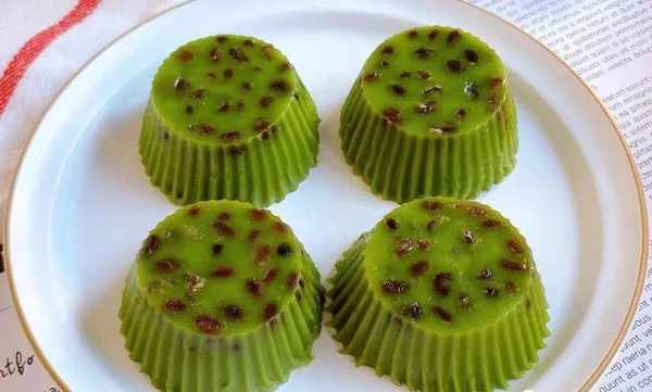 4、这道红豆抹茶糕,不仅颜值高,还美味,有一股奶香味,很诱人。吃起来软软糯糯的,一学就会。