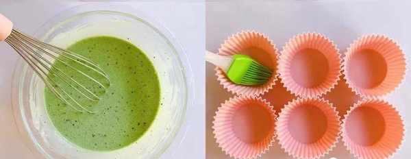 2、抹茶面糊搅拌均匀,也可以过滤一次让它更加细腻。接着准备蒸盘模具,刷一层油避免粘黏。