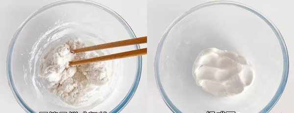 2、接着准备半碗糯米粉,加温水和面,变成面团备用。