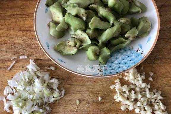2.将茄子中的水篦出,葱、蒜切末。