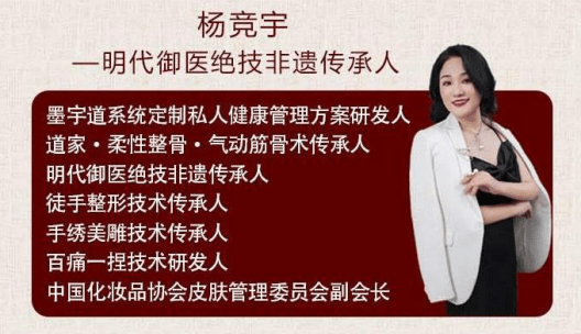杨女士从事美容养生行业20年,高级针灸师,心理咨询师,康复理疗师,医学美容师,也是一位身心灵生命觉醒的导师,经她诊断并调理过的成功案例数不胜数,上帝给了她洞悉一切的眼睛,一双妙手回春的双手,又给了她一颗金子般的心,