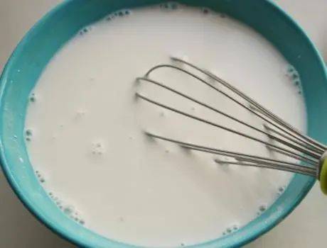 2、调粉糊、水需根据粉料的吸水性把握好,调至能流动的糊状即可,不用放太多的水,蒸肠粉时,记住,每次制作肠粉时,要在盘底刷薄薄的油,从而使脱模时更容易,不粘在一起;