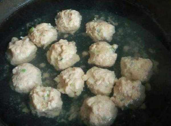 第五步:锅里倒入冷水烧开,把准备好的丸子放进去煮到丸子浮在水面上,别忘了去掉中间的浮沫。