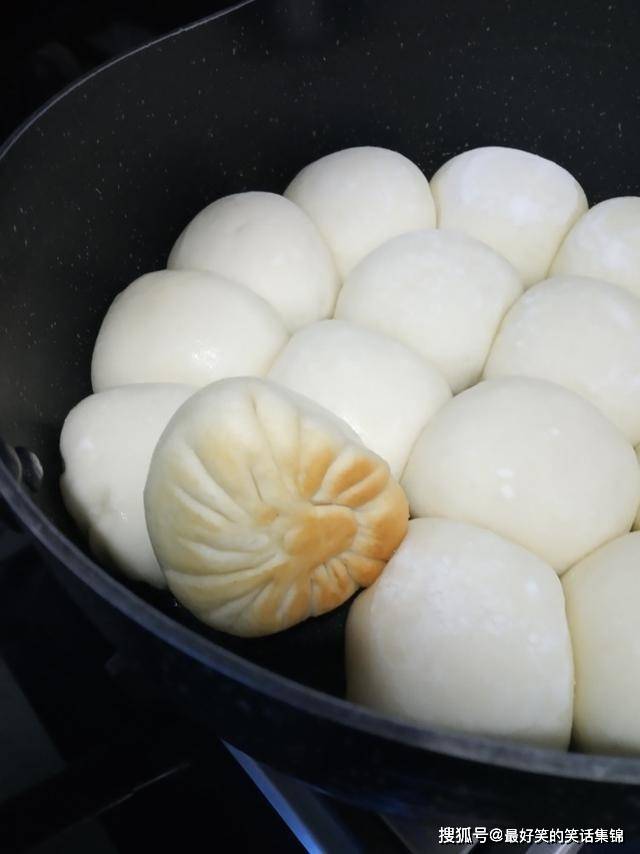 10、用中火煎至包子底部上色定形,翻到另外一面,能看到微微金黄即可。