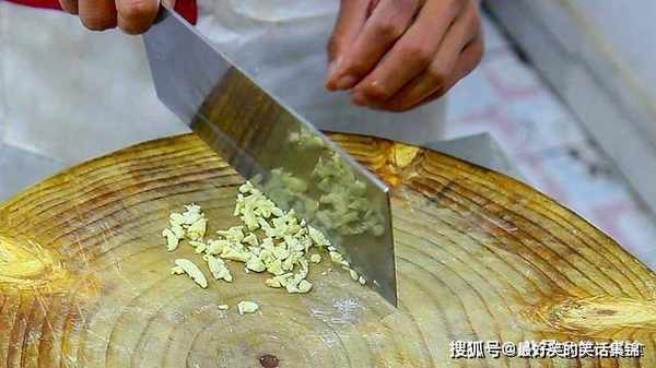 大蒜几粒,拍扁后切成碎末,放入小盆中备用。