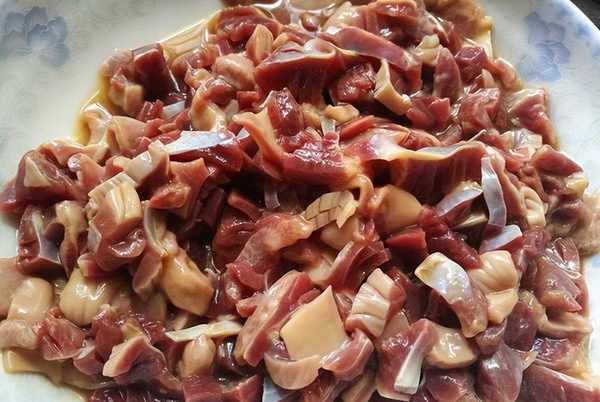 2、洗净的鸡杂需要放料腌制15分钟以上,可有效去除异味。