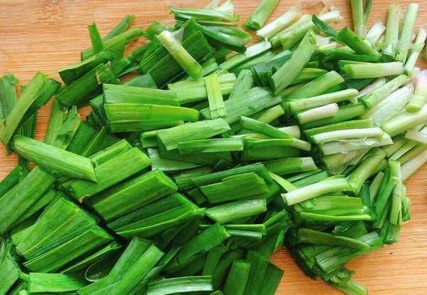 2.新鲜的韭菜择去黄叶老叶,清洗干净后切成小段备用;