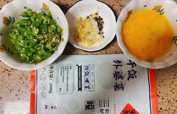 食材:外婆菜、鸡蛋、青椒、蒜、生姜