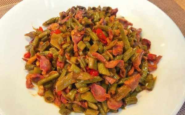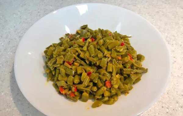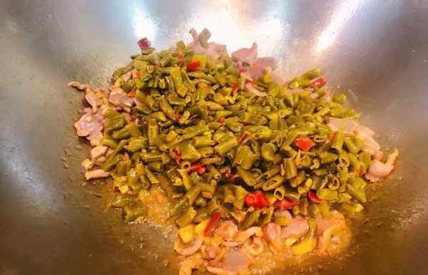 7.酸豆角是可以直接吃的,大火翻炒1分钟左右就可以出锅啦。