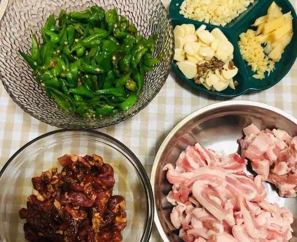 食材:五花肉、猪瘦肉、螺丝椒