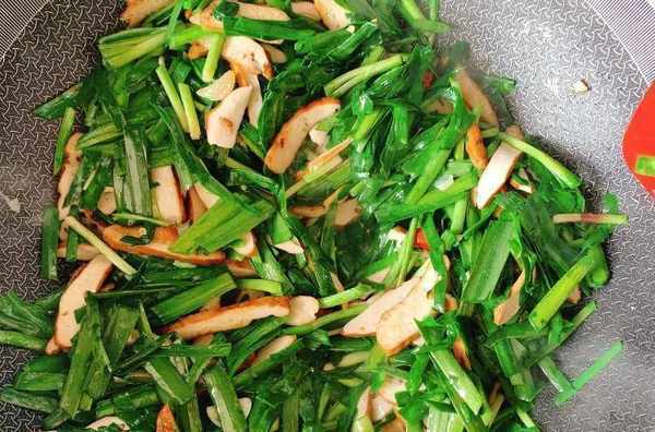 6.韭菜熟得很快,调味料放好翻炒几下就可以出锅了,炒久了韭菜会老,口感不好,韭菜鲜嫩不老,豆干鲜香入味。