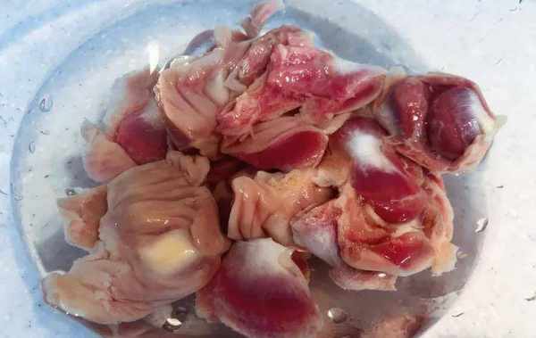 2.泡藕带清洗干净放入小碗中;鸡胗清洗干净切成薄片;