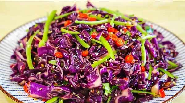 食材:紫甘蓝、大蒜、小米椒、青椒、白芝麻