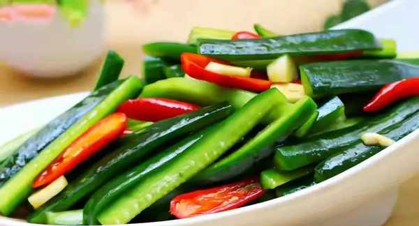 食材:黄瓜、小米椒、大蒜、白糖、香醋