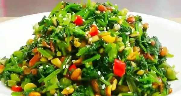 食材:香菜、熟花生米、白芝麻、小米椒、大蒜