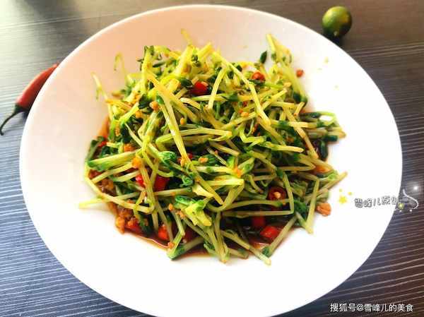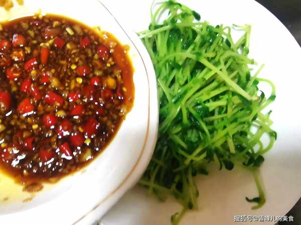 所用材料:豌豆芽适量,生抽少许,米醋少许,沙姜末少许,小米辣少许,柠檬汁少许。