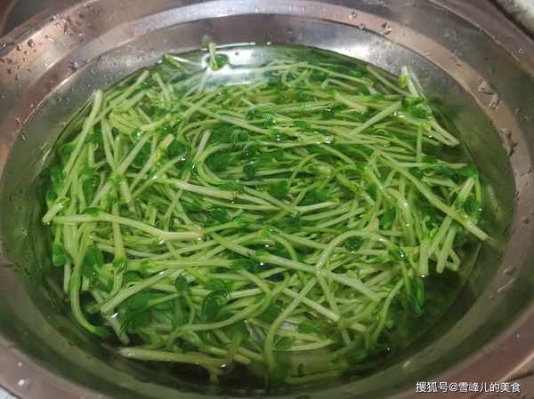 第一步:我们来看看豌豆芽,豌豆芽也叫做豌豆苗,豌豆苗性清凉,含有维他命C的成份,是燥热季节的一份清凉食材,不爱吃蔬菜的孩子往往对豌豆芽都相当喜爱。豌豆的幼苗在烹饪时,即使用沸油煎炒,苗叶并不吸收油质,熟後颜色依然苍翠欲滴,很有食欲。豌豆芽不但营养丰富,还含有大量的膳食纤维,食用可增加饱腹感,促进胃肠蠕动,湿润肠道,促进排便。而其中含有的含有优质蛋白质,可以提高机体的抗病能力和康复能力。含有的赤霉素和植物凝素,可以起到消灭细菌,去除炎症,增加新陈代谢的作用。所以在这个春天多吃点它,好处多多。