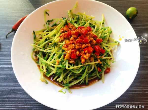 豌豆芽不知道你吃过没有?鲜嫩翠绿,一看到就会爱上它,尤其是孩子更是喜欢吃。豌豆芽俗称豌豆苗,是豌豆的嫩芽,豌豆芽的颜色很鲜明,质地又很柔软,含有极丰富的钙质、维他命B&L、以及胡萝卜素等。豌豆苗的清香气味非常受欢迎,无论作为主菜或配菜,都是十分美味可口的。我们常吃的一些用豌豆苗做成家常菜更是简单好吃,例如:鲜菇扒豆苗、蟹肉扒豆苗、清炒豆苗,拌豆苗等均是十分美味的家常菜。今天和大家分享的是一款泰式拌豆苗,特适合春天~